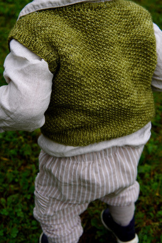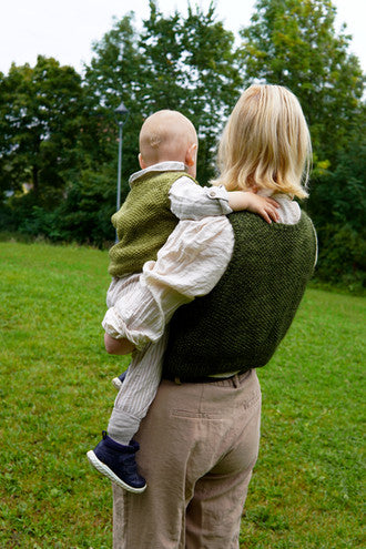 However, if you know your child is ok with Mohair or you have an older child, a strand of Mohair will make the vest both warmer and pleasantly fussy! Note that this will change the gauge to 17/18 st(s) per 10 cm giving the vest more ease - adjust by working one size smaller.