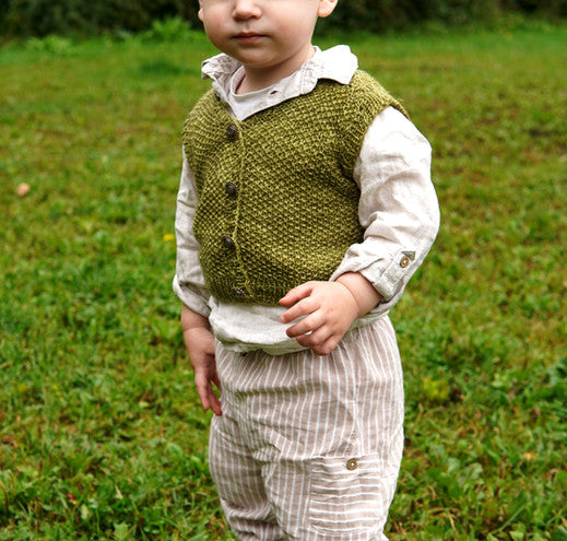 The Jr Hobbiton Vest is the unisex Jr version of the popular ladies Hobbiton Vest – a seed-stitch vest with a classic look. It’s inspired by both the beautiful vests of the 1940s, but most importantly the cozy velvet and wool vests worn by the hobbits of the Shire.