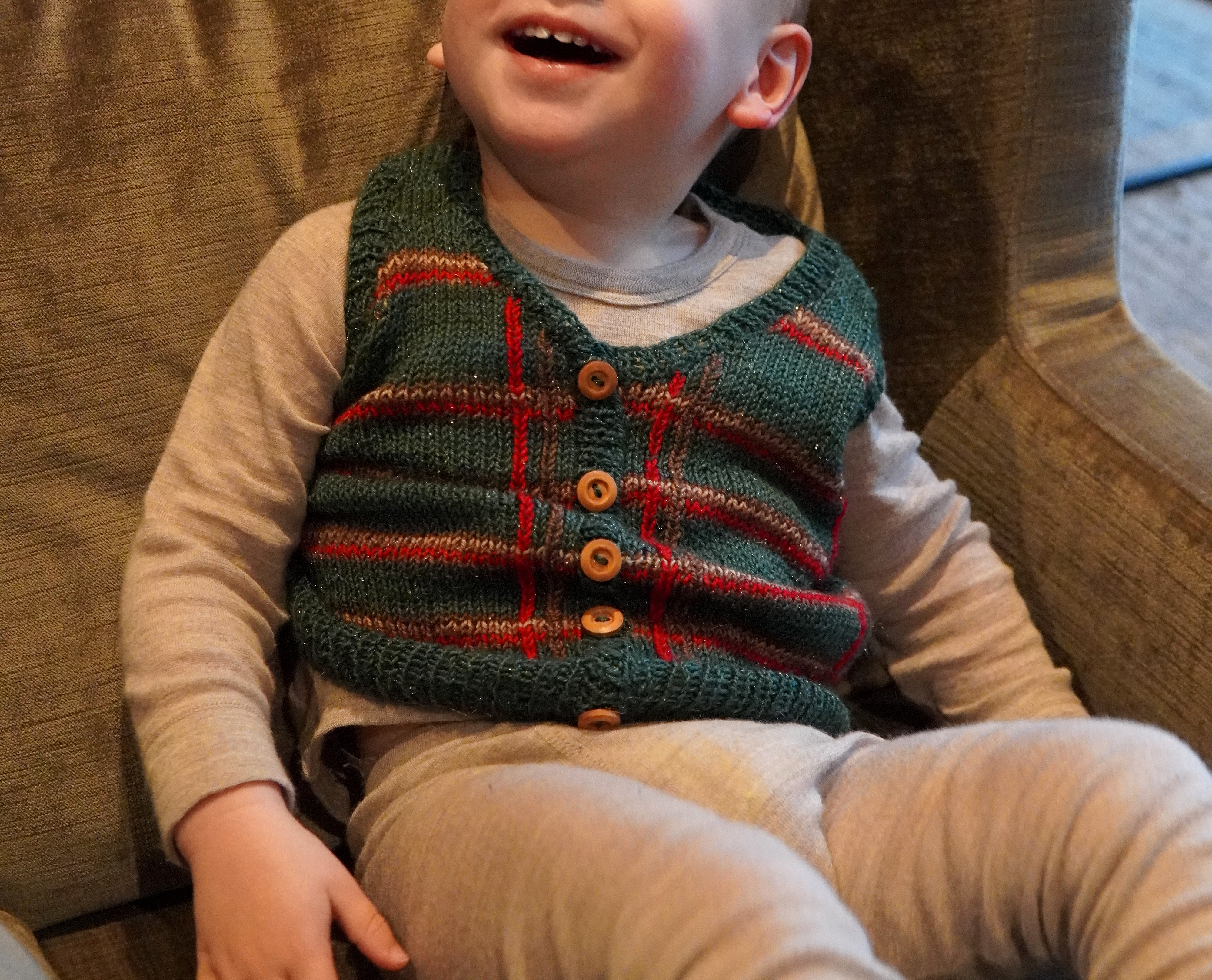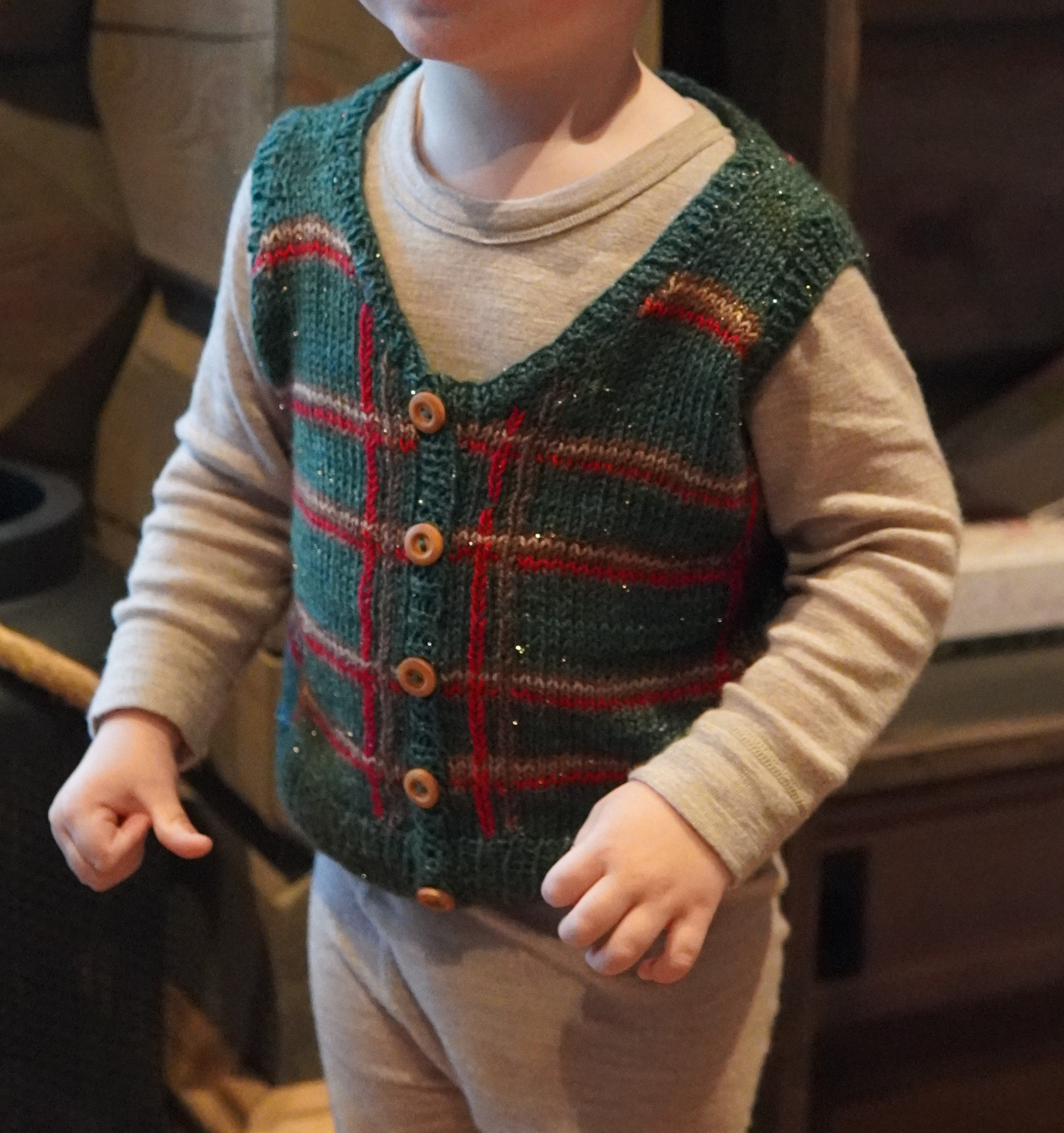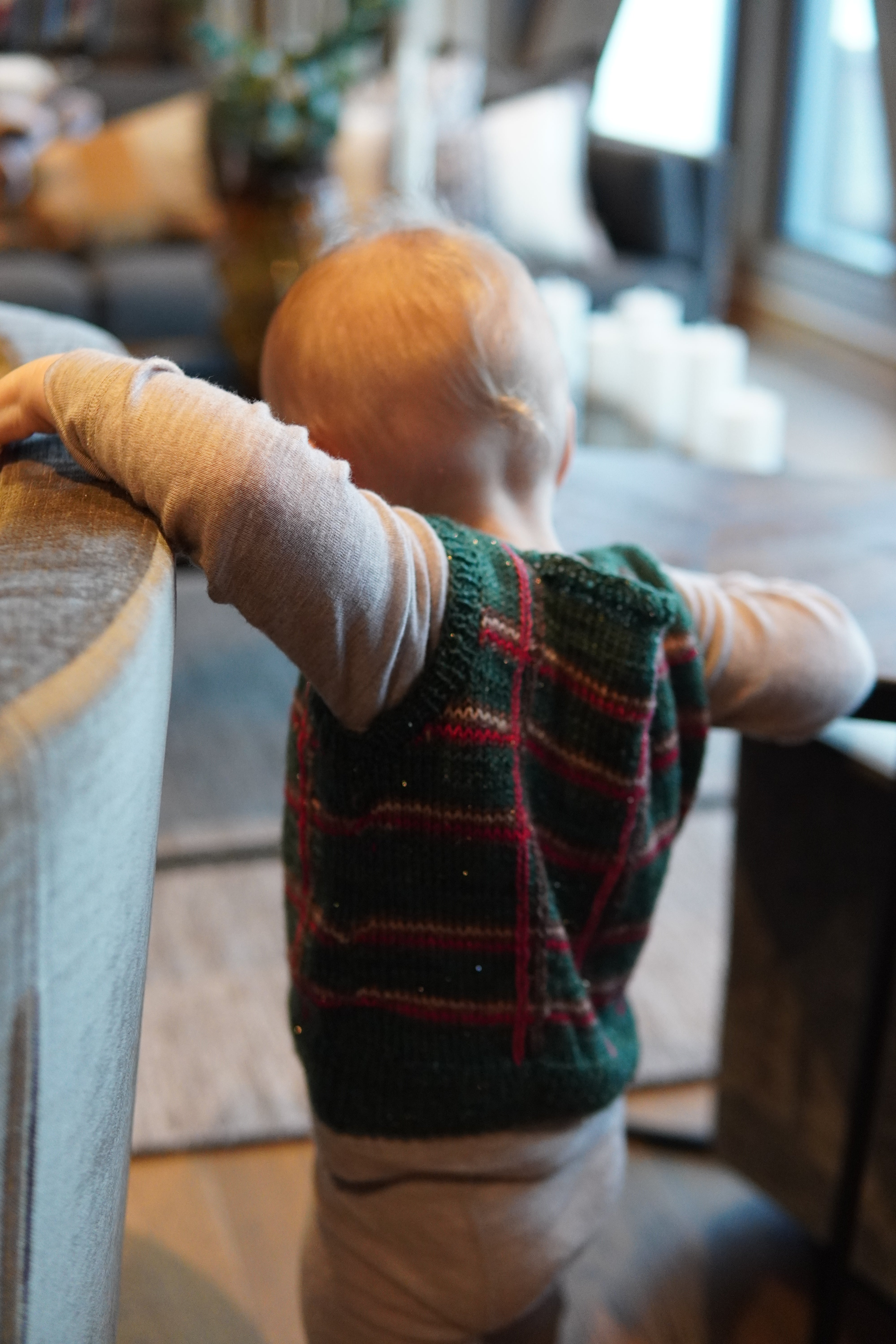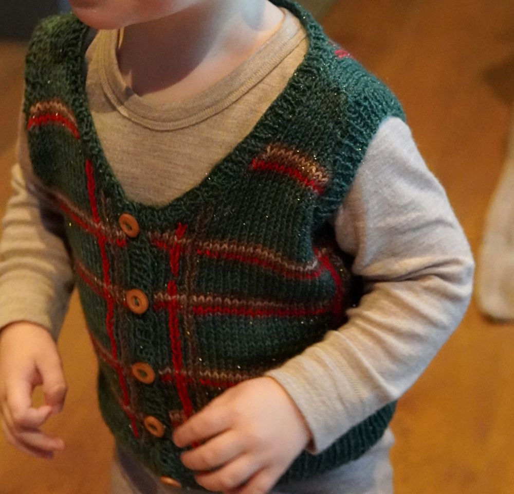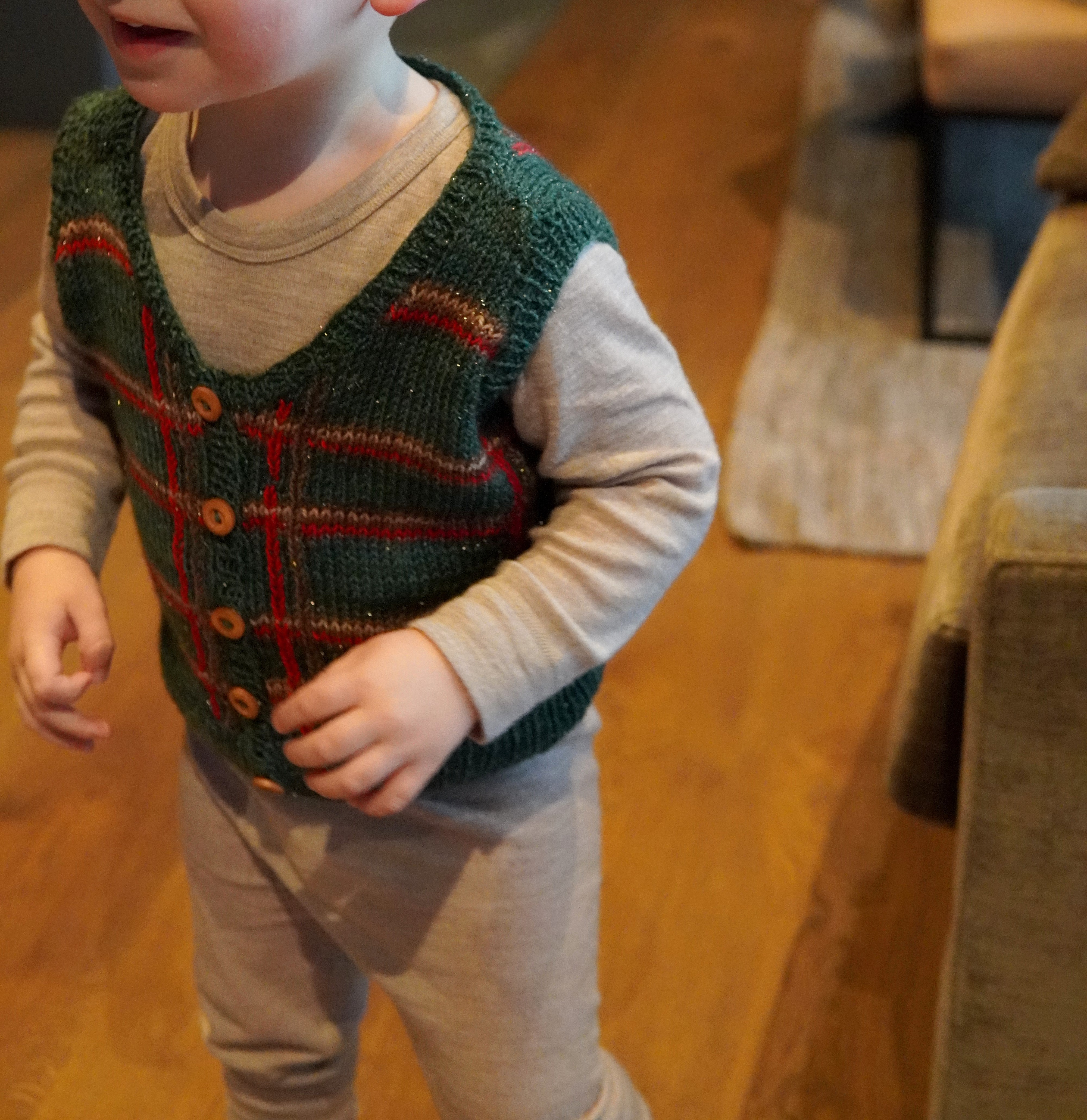 The Jr Noelle Vest is a unisex kids vest with a classic tartan pattern inspired by the 1940s. Tartan is especially fun to play around with, as it creates a very effectful aesthetic depending on your colour choices! You can make it christmassy (like me), adjust your colours to make it fin any season you like, or go for your little ones favorite colours for a season-less classic!