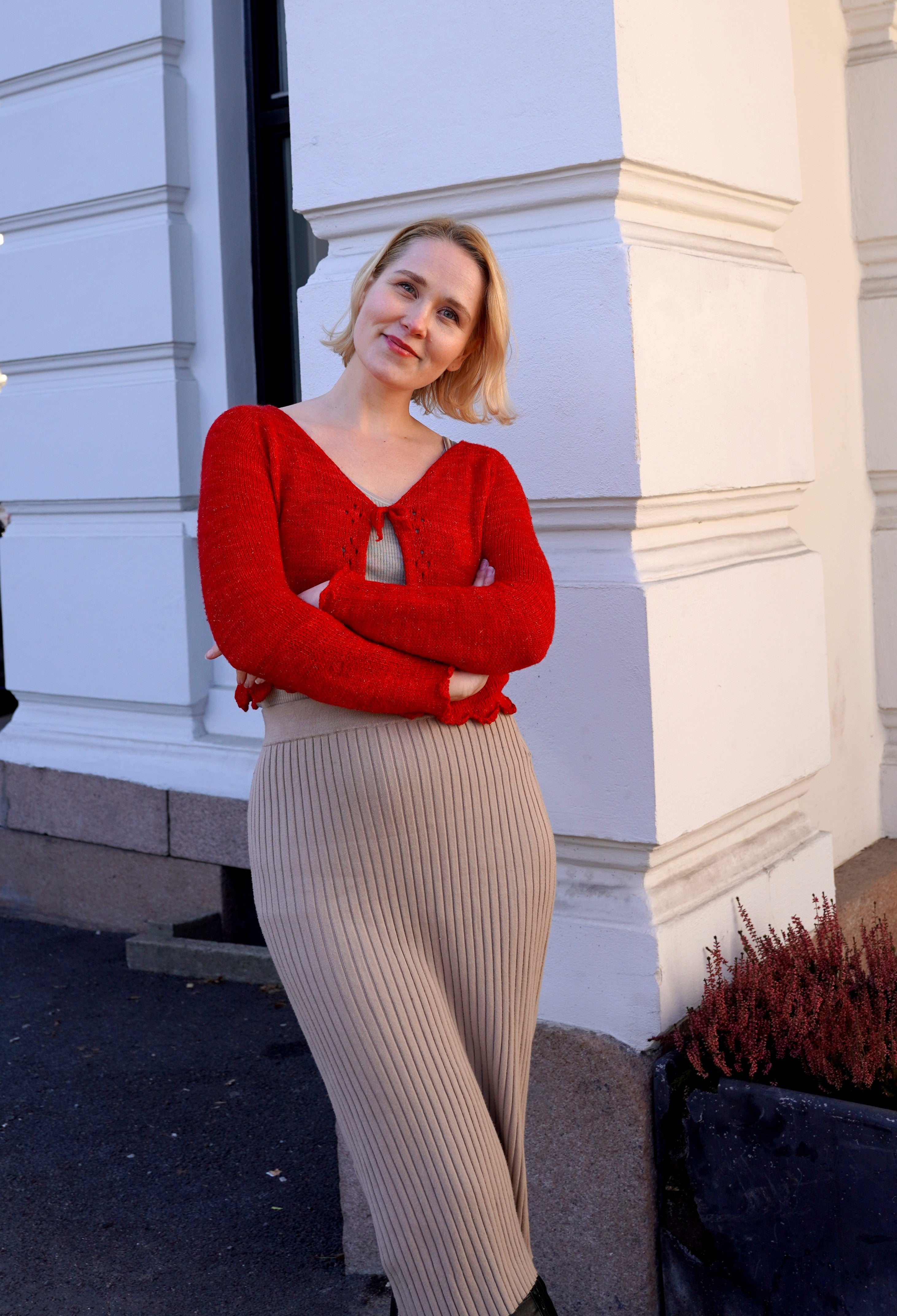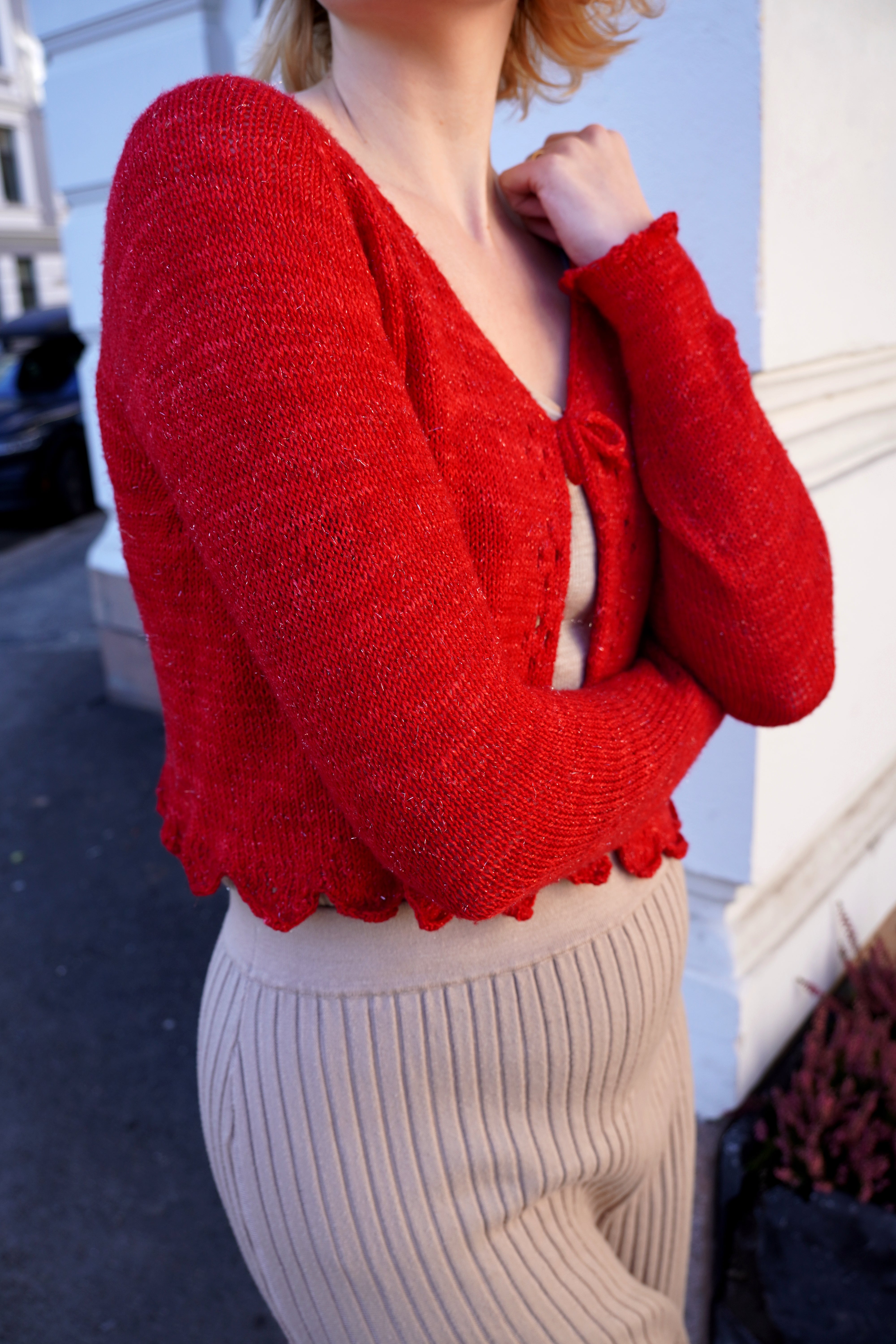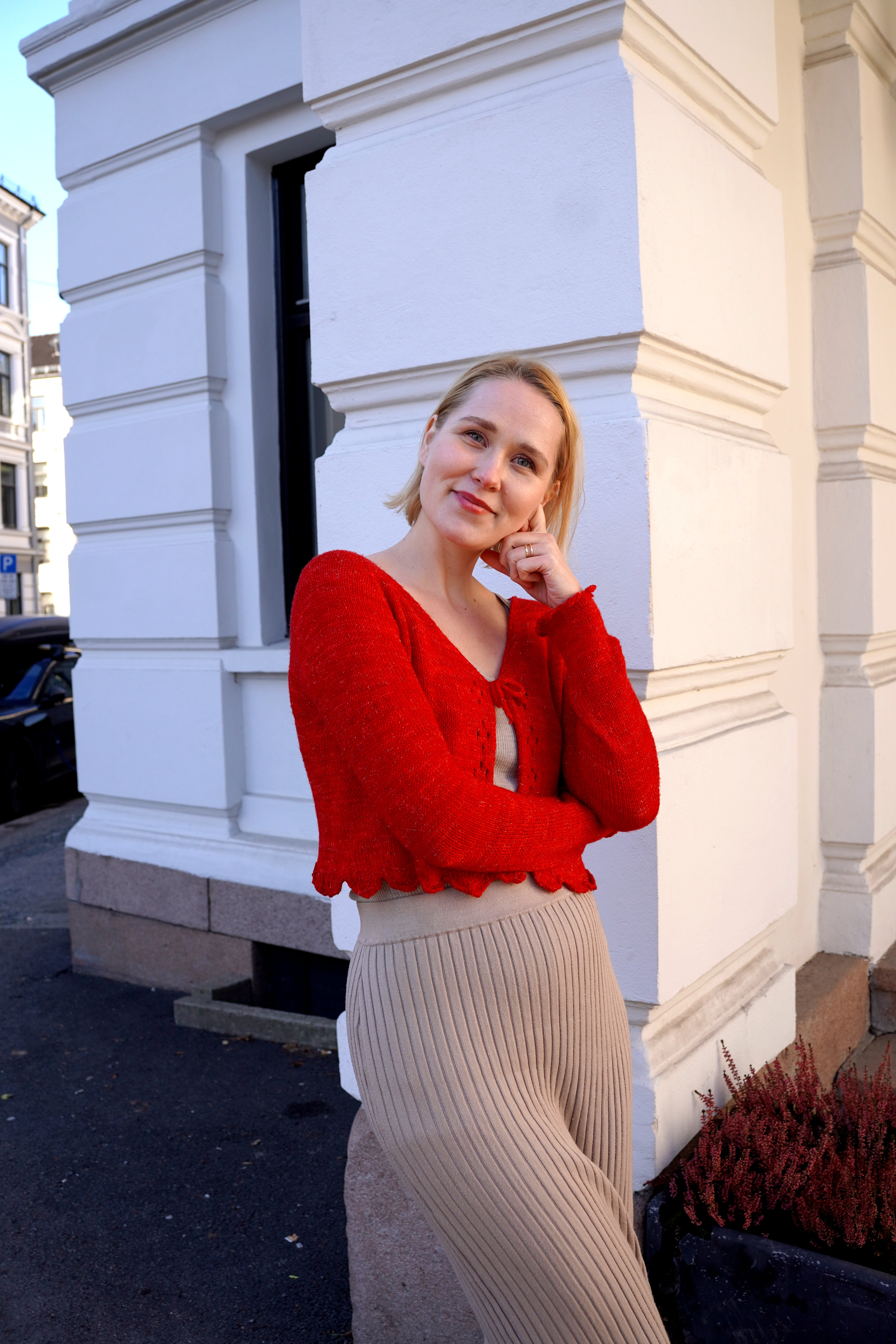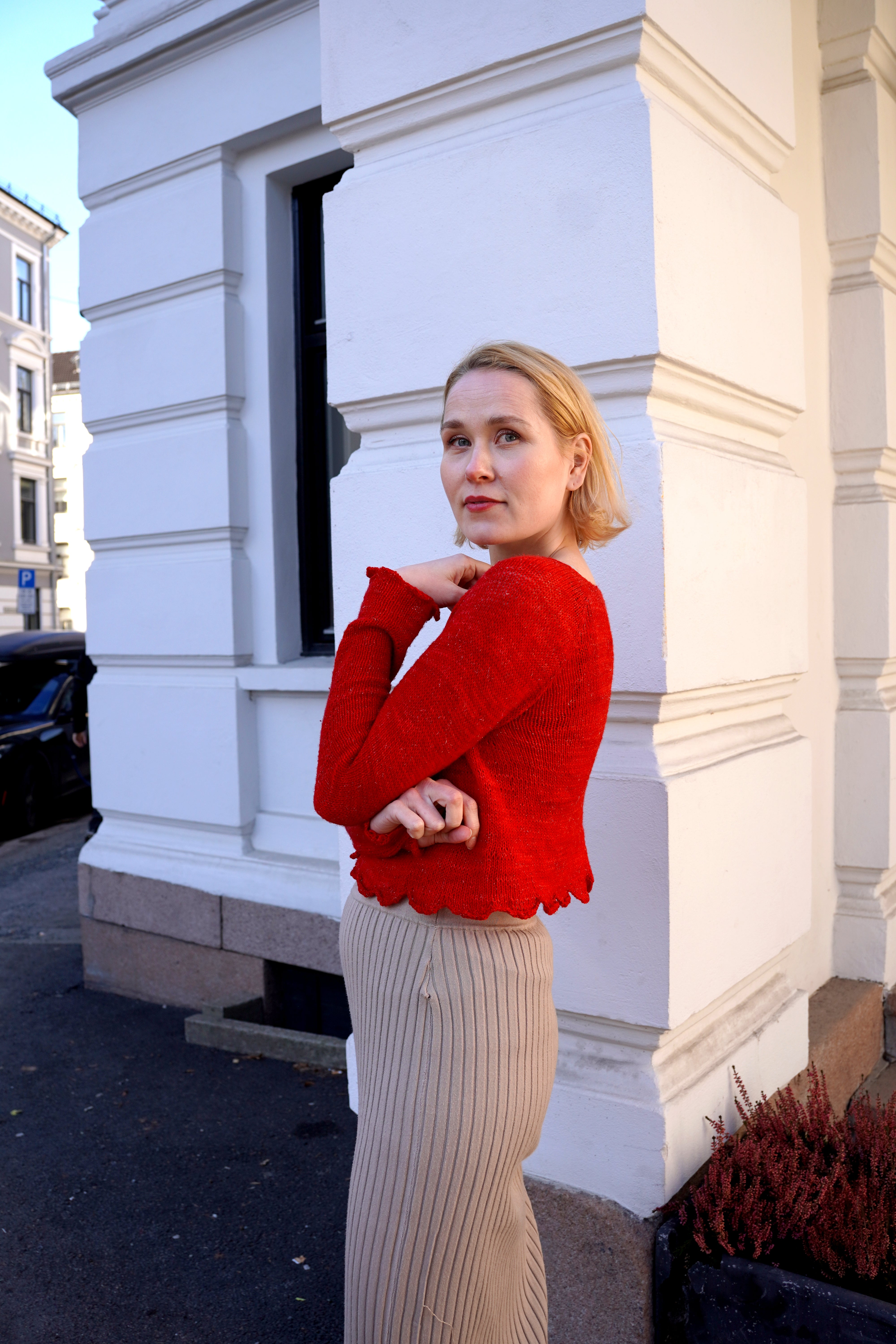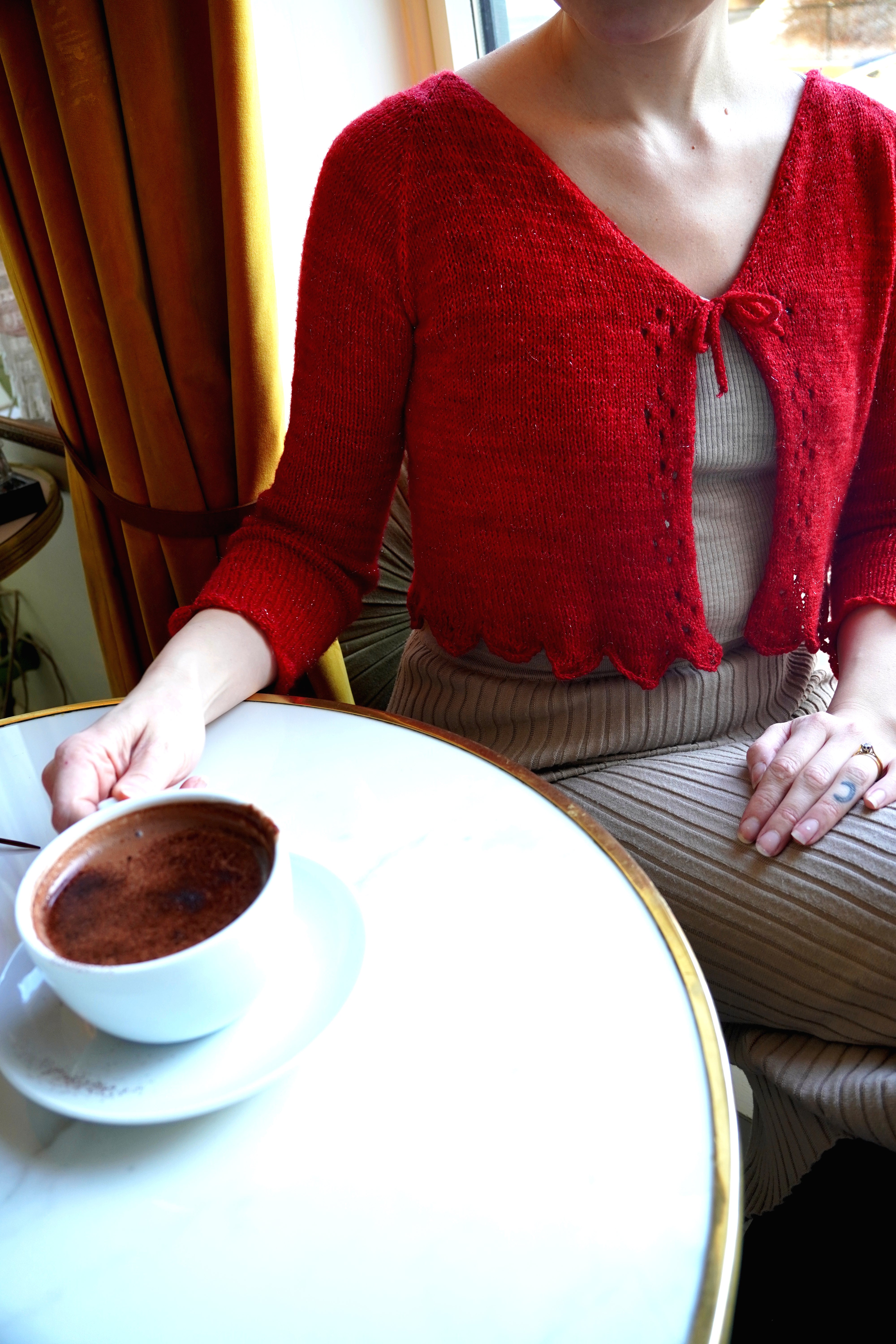 The Tulipan Cardigan is a simple and feminine cardigan with an i-cord tie over the bust, with a slightly flowing open body with simple lace details and a petal-hem. It is worked top down with raglan sleeves. Perfect over dresses!